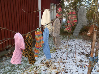 Sukkapuu on rakennettu,talvi on jo ovella ja varpaat palelee.Sukkia on ripustettu omenapuun oksille